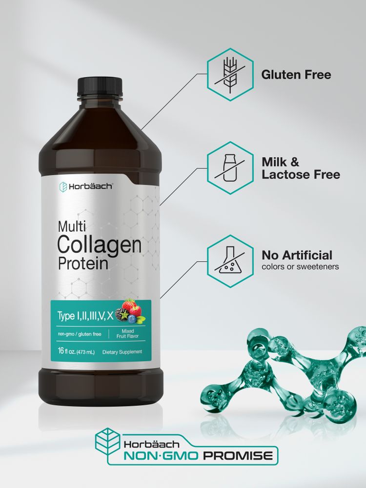 Horbaach Multi Kollagen Protein liefert die Kollagentypen I, II, III, V und X, die aus echten Vollwertnahrungsmitteln gewonnen werden. Dazu gehören Rind, Fisch, Huhn und Eierschalenmembran Kollagen, alles in einem köstlichen, gemischten Fruchtgeschmack. Unsere fortschrittliche flüssige Formel ist glutenfrei und non-GMO und kommt ohne künstliche Süßstoffe aus, was sie zur perfekten Ergänzung für jedes Regime macht.