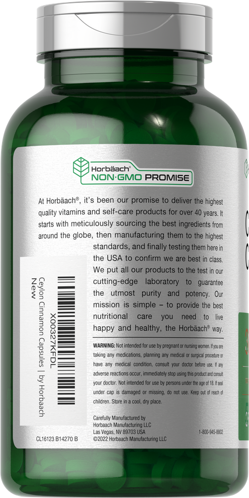 ¡Dale sabor a tu rutina diaria con la mejor, Canela de Ceilán Horbaach! Este suplemento experto proporciona el equivalente a 4,000 mg por porción de Canela de Ceilán en convenientes cápsulas de liberación rápida. Nuestra fórmula es naturalmente libre de gluten y no contiene organismos modificados genéticamente ni conservantes, lo que la convierte en una excelente opción para cualquier tradición de bienestar.