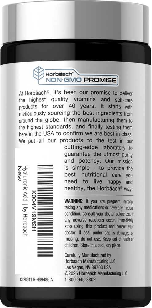 • HYALURONIC ACID: Experience the benefits of this beneficial compound with Horbaach quick release capsules!