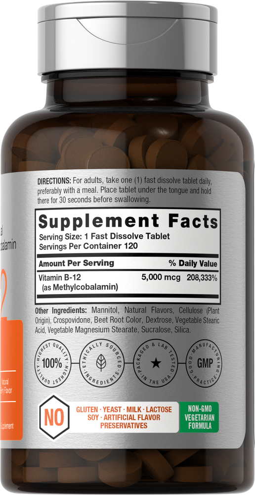 • FORMULE PUISSANTE : Comprimés à dissolution rapide avec 5 000 mcg de vitamine B-12 sous forme de méthylcobalamine