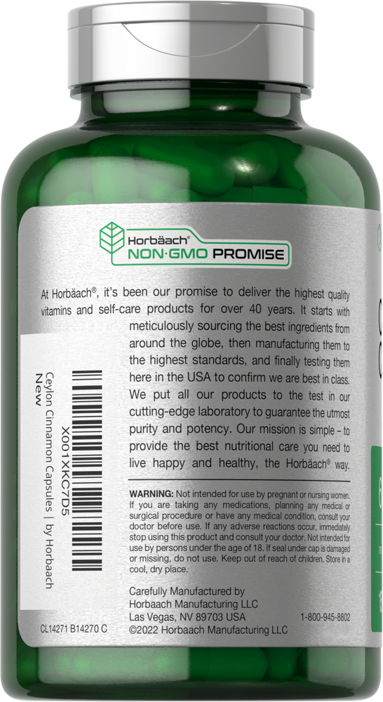 Épicez votre quotidien avec la Cannelle de Ceylan Horbaach ! Ce complément hautement innovant fournit l'équivalent de 6 000 mg par portion de Cannelle de Ceylan dans des capsules à libération rapide et pratiques. Notre formule est sans gluten et non-OGM, sans arôme artificiel, édulcorant ou conservateur, ce qui en fait un excellent choix pour les adultes partout dans le monde !