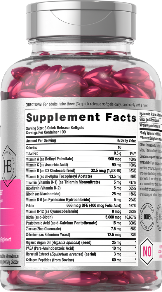 Une nouvelle ère des soins personnels a produit une approche plus naturelle de la beauté. Des ingrédients puissants comme la Biotine, l'Argan, le Collagène, la Vitamine B, la Vitamine E, et d'autres minéraux deviennent des produits phares dans l'industrie de la beauté. Les multivitamines pour femmes et d'autres produits de bien-être courants incluent ces ingrédients dans leurs formules pour un soutien fort.