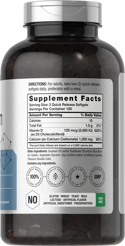 Le supplément de carbonate de calcium de Horbaach est votre source de nutrition quotidienne la mieux notée. Notre calcium absorbable 1200 mg avec vitamine d3 5000 iu fournit 1200 mg de calcium de première qualité plus 125 mcg (5 000 IU) de vitamine D3 par portion. Chaque capsule molle à libération rapide contient 600 mg de calcium de haute qualité enrichi en vitamine D. Essayez nos capsules molles de calcium les plus vendues dès aujourd'hui et obtenez le soutien dont vous avez besoin pour prospérer et rester actif.