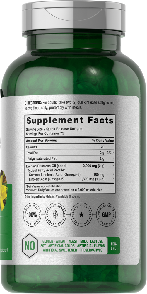 • PRESSÉ À FROID : Des gélules à libération rapide de qualité supérieure fournissent 2 000 mg d'huile d'onagre par portion!