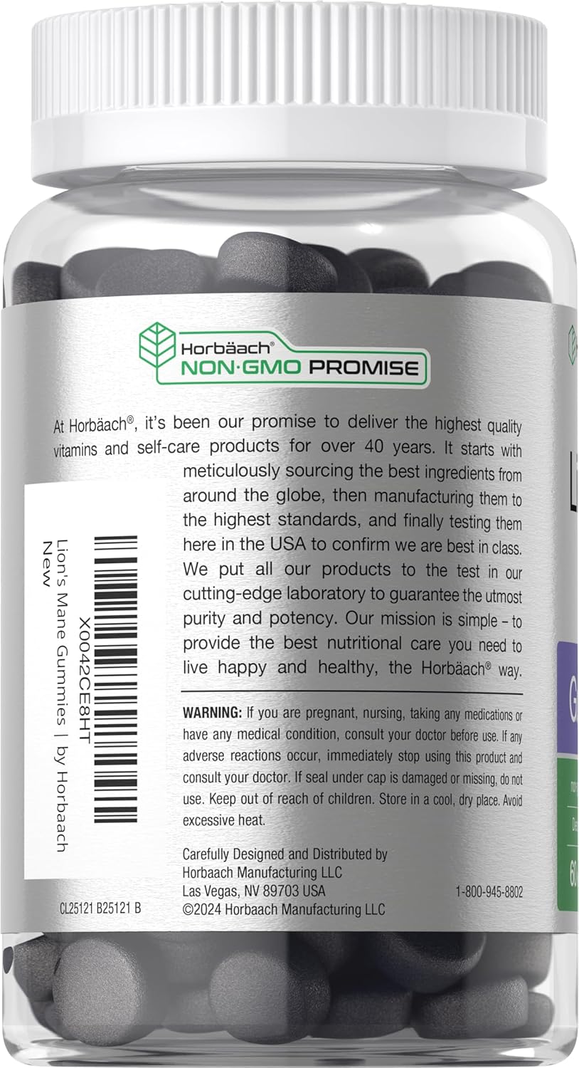 • FORMULE AVANCÉE : Les gommes végétaliennes fournissent 750 mg d'extrait de champignon Crinière de Lion par portion