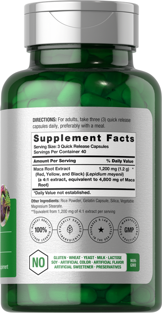 • ABSORPTION OPTIMALE : Offre l'équivalent de 4800 mg de Maca péruvienne dans une capsule à libération rapide