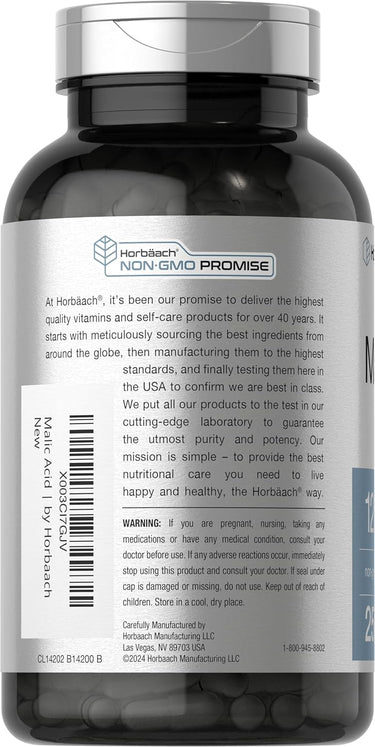 Découvrez la puissance de l'acide malique Horbaach ! Ce complément avancé est conçu pour répondre à vos besoins, offrant 1 200 mg d'acide malique par portion dans des capsules à libération rapide. Il est sans gluten et non-OGM, ce qui en fait un choix de supplément privilégié pour les hommes et les femmes partout dans le monde !