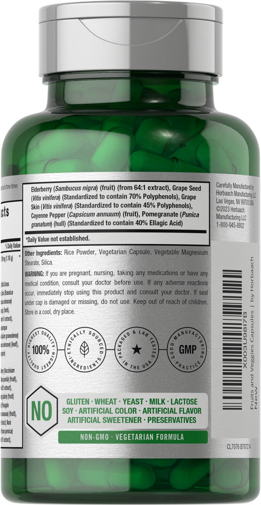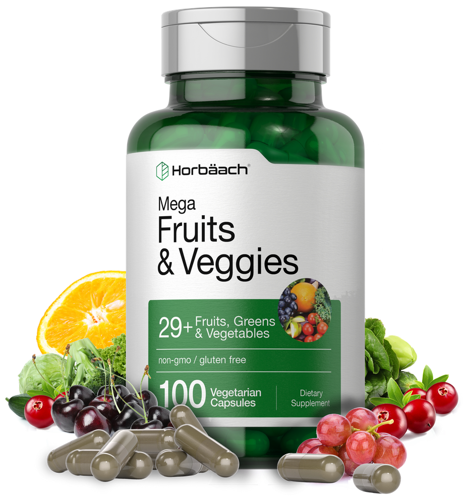 Boostez votre routine quotidienne avec Horbaach Mega Fruits & Légumes ! Cette formule hautement innovante offre un mélange unique de plus de 29 Fruits, Légumes verts et Légumes, dans des capsules végétariennes pratiques. Notre formule est sans gluten et non-OGM, sans arôme artificiel ni conservateurs, ce qui en fait un choix populaire pour les hommes et les femmes partout dans le monde !