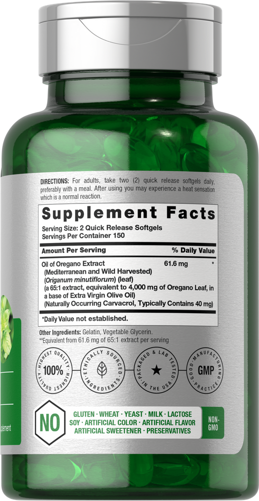 Découvrez l'huile d'origan de Horbaach! Notre formule est scientifiquement conçue pour offrir l'équivalent de 4 000 mg d'huile d'origan par portion en capsules molles à libération rapide pratiques. Dérivé de la feuille de la plante Origanum minutiflorum, elle est sans gluten et sans OGM, fabriquée sans colorant, arôme ou édulcorant artificiel, un complément de haute qualité pour les adultes recherchant un soutien supplémentaire de cette puissante herbe.