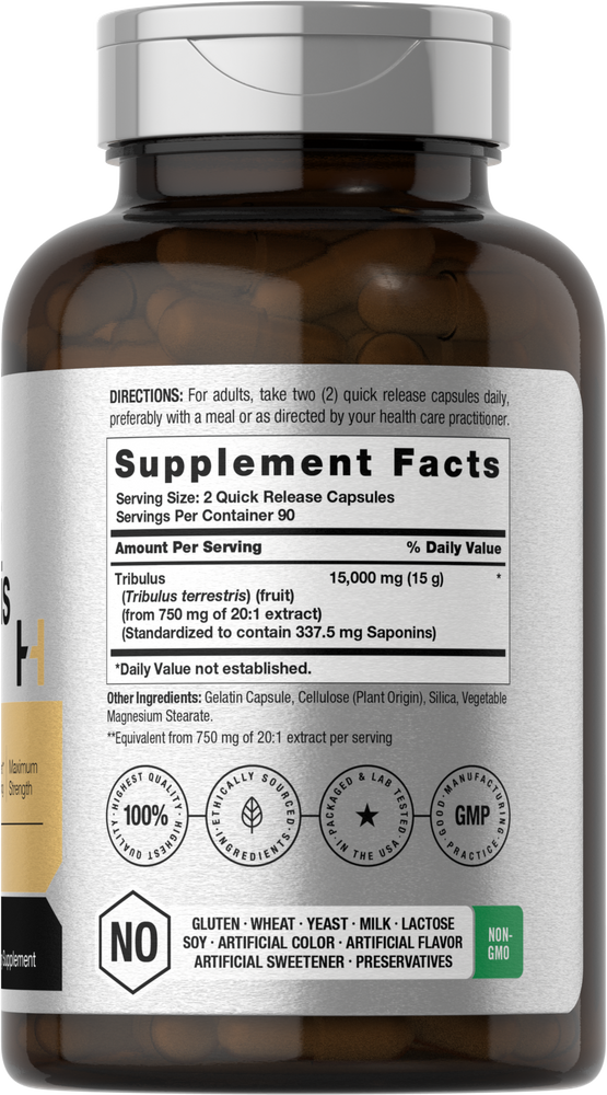 • FORME OPTIMALE : Offre l'équivalent de 15 000 mg de Tribulus par portion dans des capsules à libération rapide
