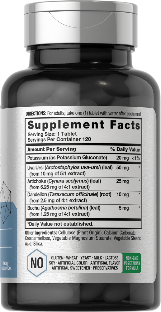Découvrez la pilule d’Eau Super Force d’Horbaach ! Les comprimés pratiques contiennent une dose de 20 mg de potassium, ainsi que de l'Uva Ursi, de l'Artichaut, du Pissenlit et de la Feuille de Buchu, le tout dans un mélange synergique. Notre formule végétarienne est sans gluten et sans OGM, sans arôme, édulcorant ni conservateur artificiels, ce qui en fait un ajout facile à votre routine quotidienne. Profitez de notre approvisionnement de 120 comprimés !