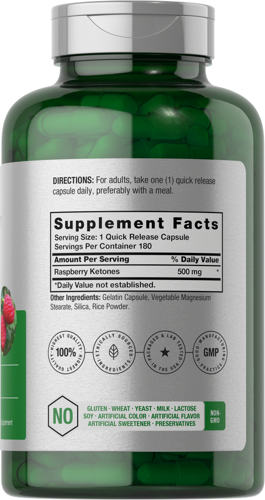 Abbiamo creato una formula innovativa di Chetoni di Lampone che utilizza pratiche avanzate. Fornisce 500 mg di Chetoni di Lampone in una singola dose giornaliera. Le nostre capsule a rilascio rapido, convenienti, sono senza glutine e non OGM, inoltre non contengono aromi artificiali, dolcificanti artificiali o conservanti, rendendole una scelta popolare come integratore per uomini e donne adulti.