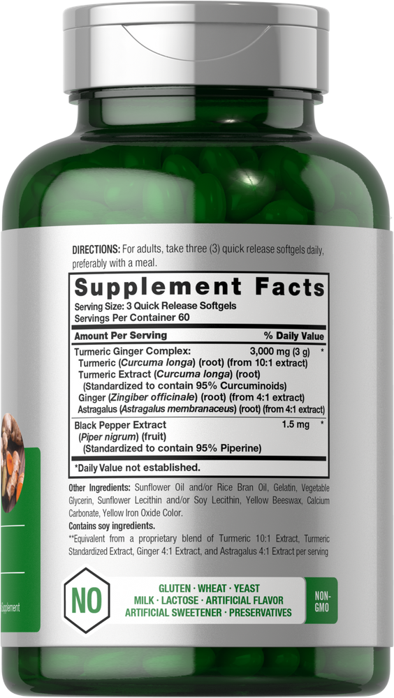 • CURCUMA E ZENZERO: La nostra formula combina questo potente duo in pratiche softgel a rilascio rapido
