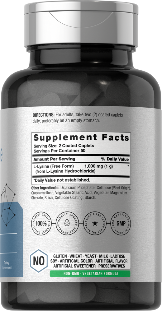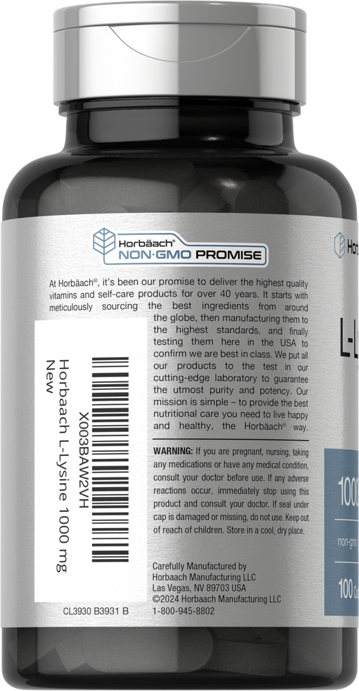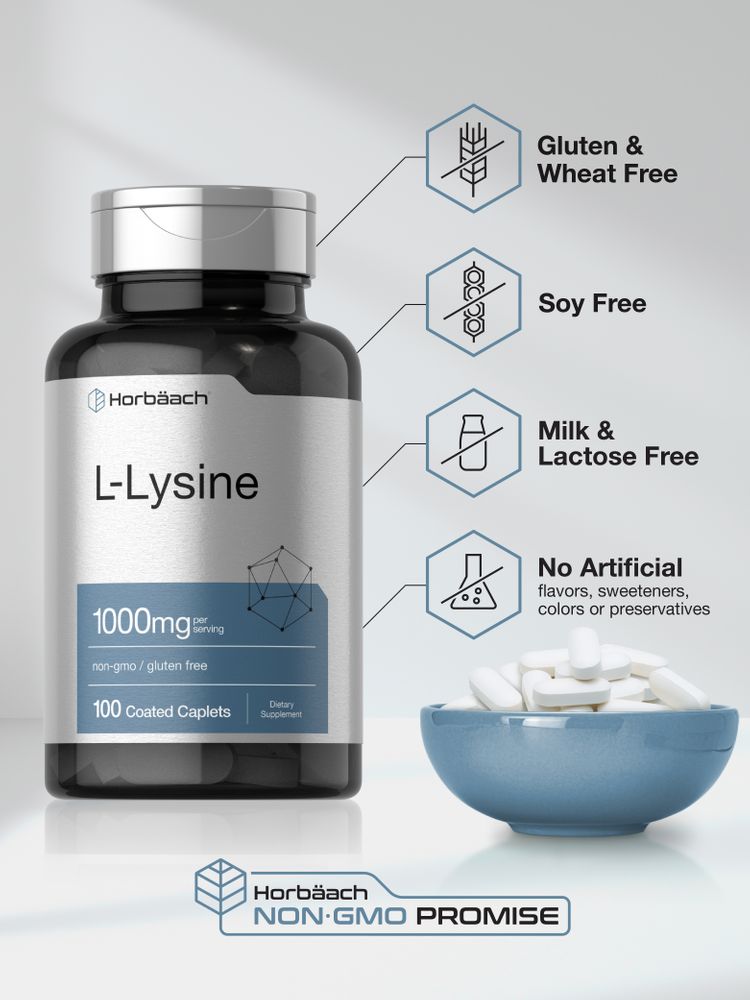 At Horbaach, our advanced formula features an innovative, free form of Lysine, delivering 1,000 mg of L-Lysine (from L-Lysine Hydrochloride) per serving in coated caplets. It is gluten-free, non-GMO, and naturally free of preservatives, making it the perfect supplement for a balanced lifestyle.