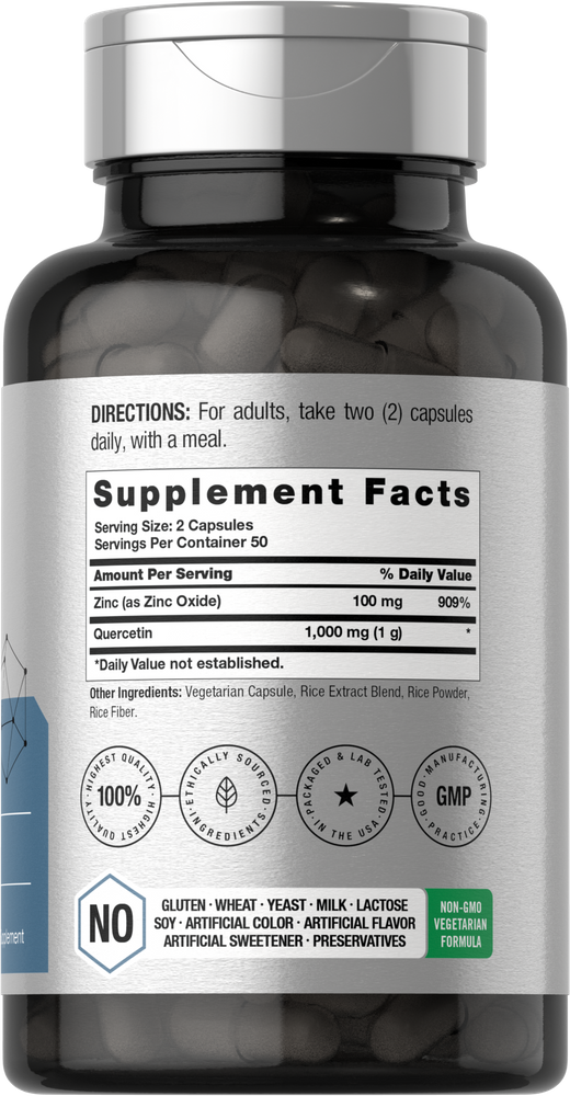At Horbaach, our Quercetin supplement is an advanced formulation, providing 1,000 mg of Quercetin plus 100 mg Zinc (as Zinc Oxide) per serving in premium capsules. Our vegetarian formula is gluten free and non-GMO, made with no artificial flavor, sweetener, or preservatives, delivering the exceptional quality men and women deserve for their daily routine!