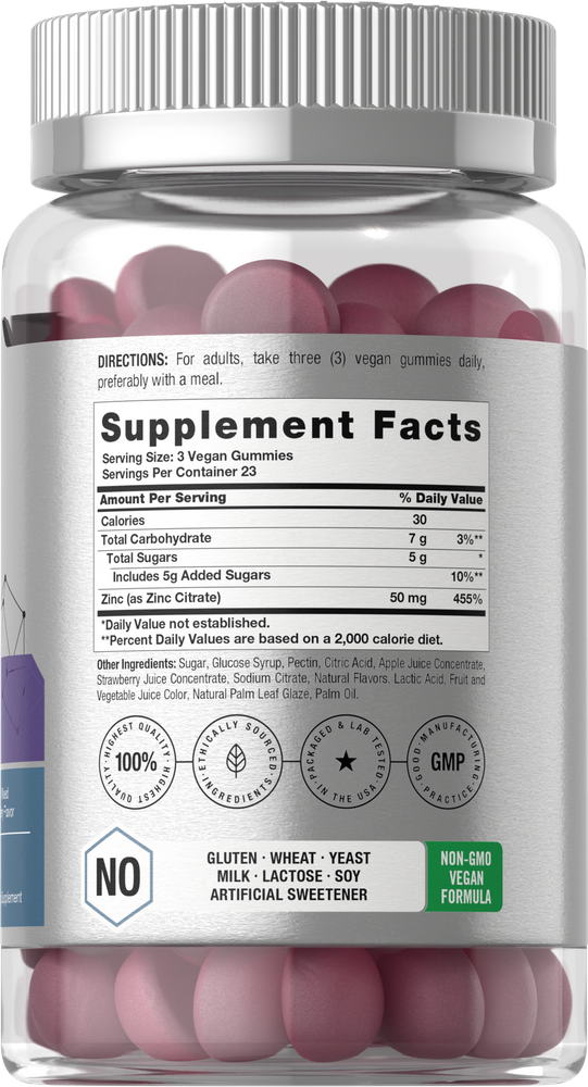 Horbaach Vegan Zinc Gummies are a wonderful addition to a strong wellness routine. These gummies for adults provide 50 mg of Zinc per serving, made with delicious mixed berry flavor and no artificial sweetener. Our premium line of Gummy Vitamins has everything you need to enhance your wellness routine!