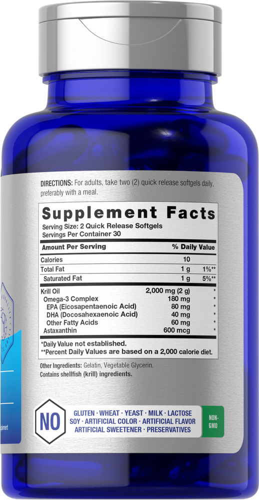 • MEGA POTENT: 2,000 mg per serving of Krill Oil with naturally-occurring EPA & DHA plus Astaxanthin!