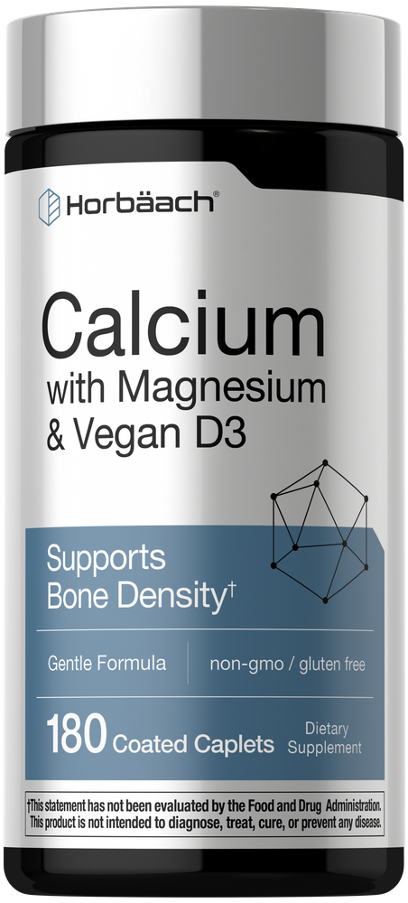 At Horbaach, our convenient coated caplets provide 500 mg Calcium, 250 mg Magnesium, plus 12.5 mcg Vitamin D3 for added support. Our gentle formula is scientifically designed to help support bone density.* It's gluten free and non-GMO, making it a popular supplement of choice for adult men and women everywhere! Enjoy our 180-count supply today!