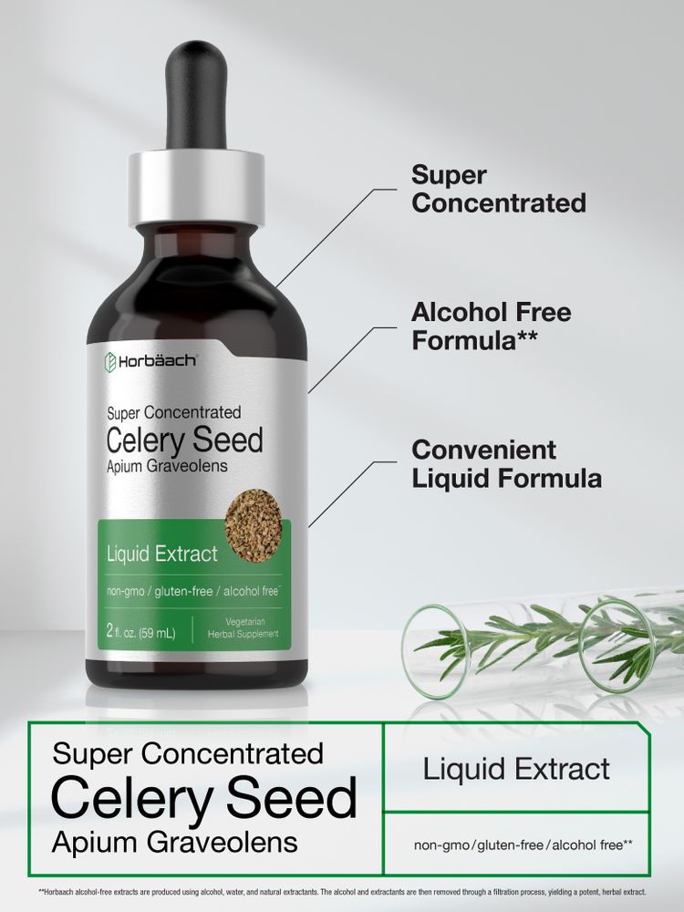 Comer aipo e beber suco de aipo são ótimas maneiras de obter vitaminas, mas não oferecem os mesmos nutrientes das sementes de aipo. A Semente de Aipo está disponível em suplementos como pó, comprimidos, tinturas, cápsulas e tabletes. Agora há uma maneira ainda mais fácil de adicionar esta erva à sua rotina diária com o extrato líquido premium da Horbaach.