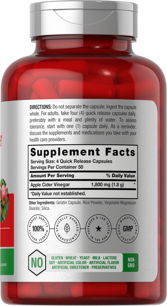 Obtenha suporte premium com o Vinagre de Maçã da Horbaach. Esta fórmula altamente inovadora apresenta 1.800 mg de Vinagre de Maçã por porção em cápsulas de liberação rápida. É sem glúten e não-transgênico, sem adoçante ou conservantes artificiais, tornando-se uma fórmula de alta qualidade para uma rotina equilibrada.
