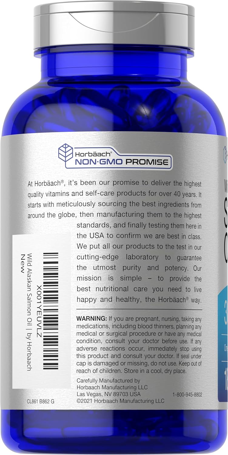 <p>O Óleo de Salmão Selvagem do Alasca da Horbaach é o suplemento completo de ômega-3, oferecendo a você 3.000 mg de Óleo de Salmão Selvagem do Alasca por dose em cápsulas de liberação rápida convenientes. Nossa fórmula de alta qualidade apresenta a melhor fonte de Óleo de Salmão, uma fonte potente de EPA e DHA. Mantemos nossos ômegas em alta consideração, purificando para eliminar mercúrio e garantir qualidade excepcional para a sua rotina. Receba um valor superior hoje mesmo com nosso suprimento de 180 cápsulas!</p>